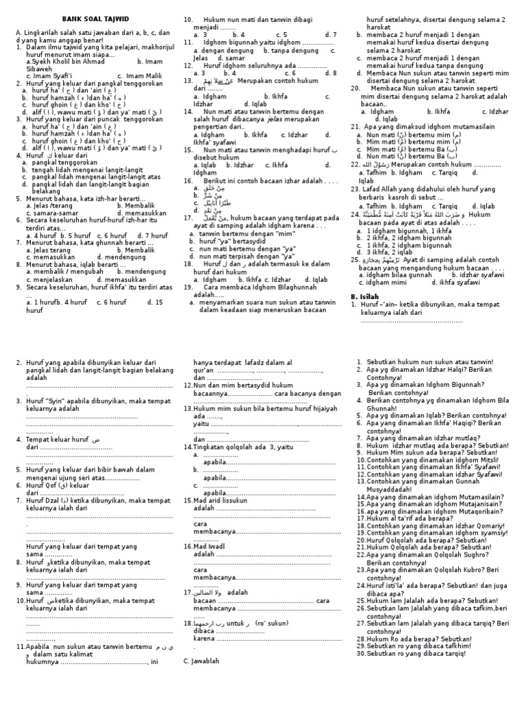 Soal Dan Kunci Jawaban Tajwid Revisi 2021. Download Soal Tajwid Pilihan Ganda Dan Jawabannya PDF 700 MB - SamPDF SamPDF SOAL PEMBAHASAN HUKUM TAJWID PAI SMASMK Kurikulum 2013 Kelas 10. Dokumen Serupa dengan SOAL TAJWIDdocx.
