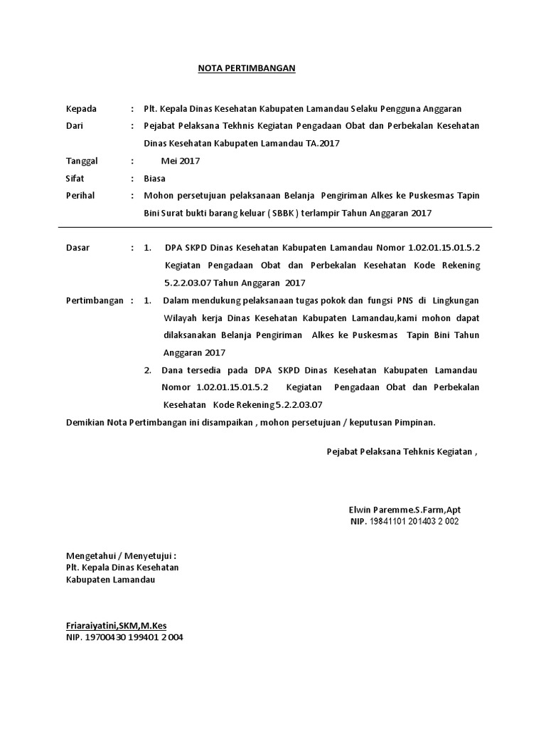 Nota Pertimbangan Eni Docx Pemerintah Kabupaten Lamandau Dinas Pendidikan Dan Kebudayaan Alamat Kompleks Perkantoran Pemda Kab Lamandau Bukit Hibul Course Hero