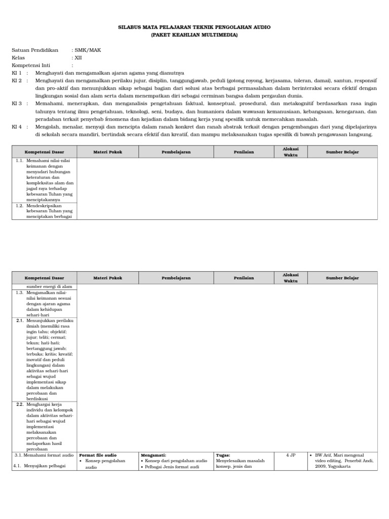 Doc Silabus Mata Pelajaran Teknik Pengolahan Audio Paket Keahlian Multimedia Asep Dedi Kurniadi Academia Edu